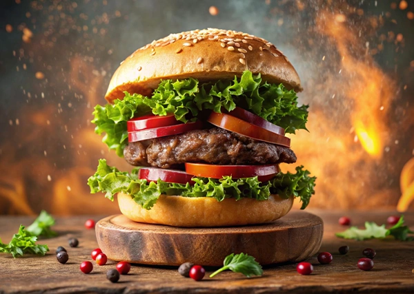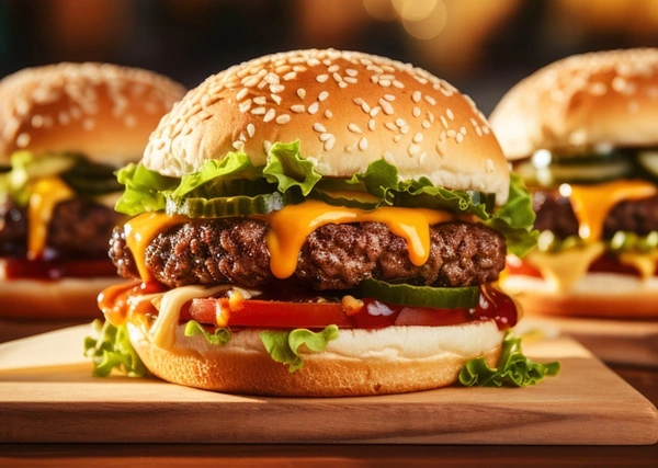 Hambúrguer artesanal com blend de carne, queijo cheddar, alface, tomate e molho especial.